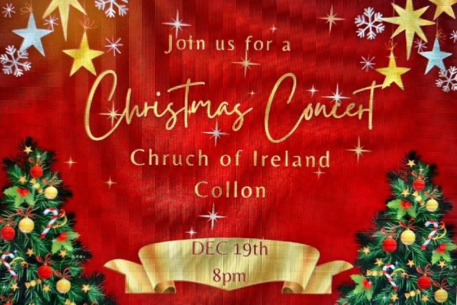 Friends of Collon Church are delighted to announce a concert in the Church of Ireland Collon on Thursday 19th December at 8.00pm, just a few days before Christmas.