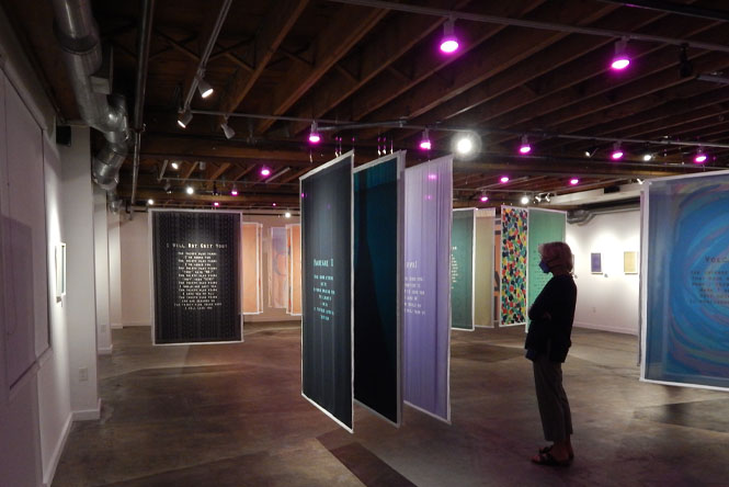 Irish-American Poet Kevin Mooney and Indian Fibre Artist Saumitra Chandratreya have collaborated to create an innovative Reverse Ekphrastic Art installation. Chandratreya has taken Mooney’s insightful poetry to inspire his abstract images which were overlaid on large scale fabric banners. By combining two artistic genres and creating a single three dimensional expression of creativity they invite the viewer into an ethereal meditation on love and language.